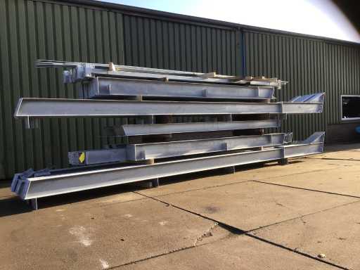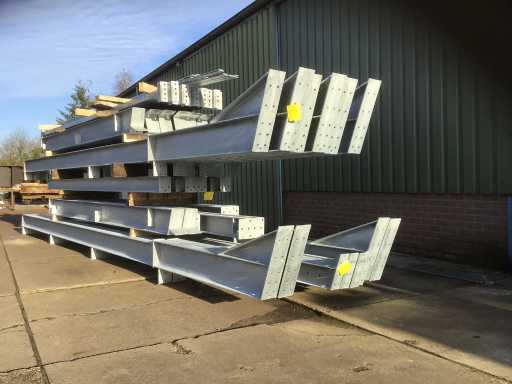 1 Eindspant: 2 x hoekkolom I180, 2 x dakligger I180, 2 x tussenkolom U200 en 1x deurbalk U200 a 5,00 mtr.