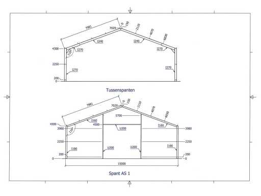 5 Tussenspanten: 2 x kolom I270 en de eerste 1,70 mtr. v.d. dakligger I270, de rest v.d. dakligger I240