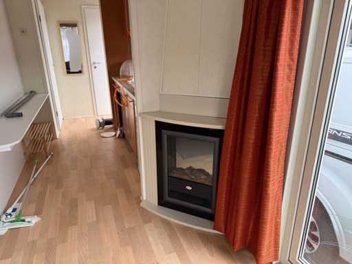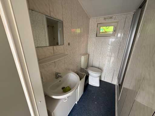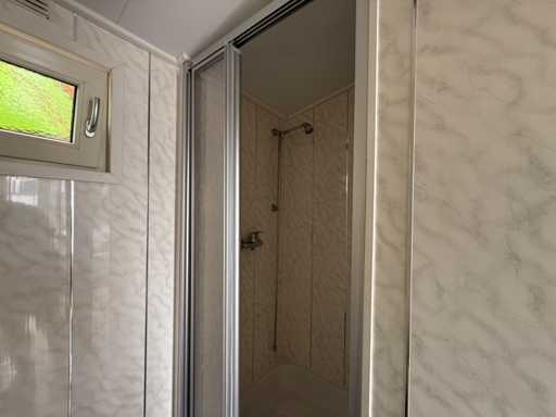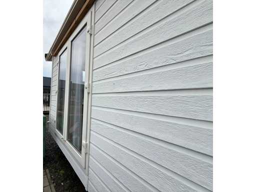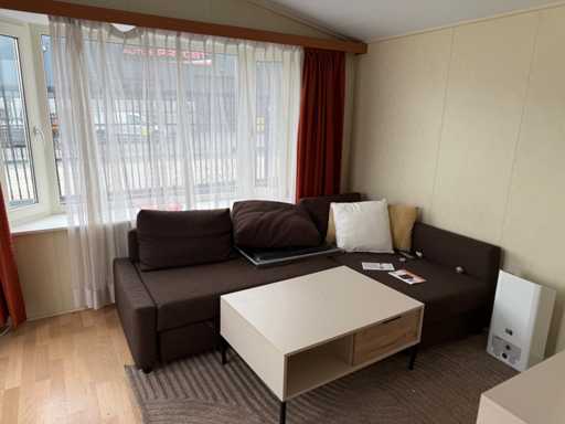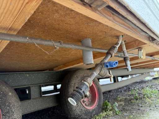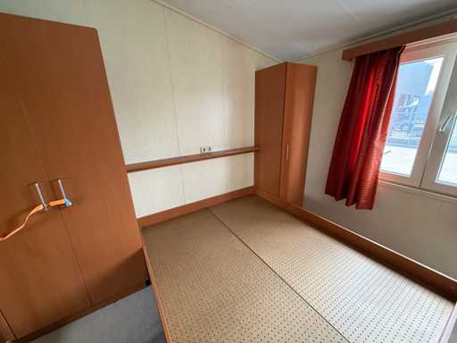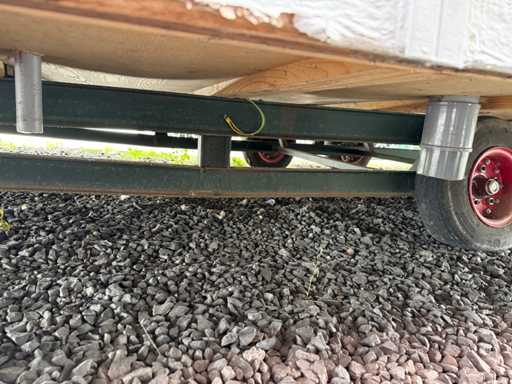 Aansluiting gas, elektriciteit, water en afvoer. Verrijdbaar met normale aanhanger koppeling.