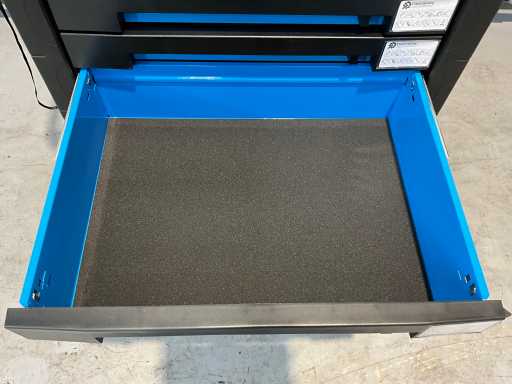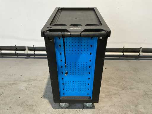 inclusief gereedschap Dubbelwandversie met twee full-surface lagen van robuuste staalplaat, voor stabiliteit en levensduur Centrale vergrendeling met cilinderslot Robuuste laden, belastbaar tot 40 kg Kogellagers, veilig en makkelijk rijdend bij hoge belasting 4 wielen, diameter 125 mm: 2 vaste rollen, 2 zwenkwielen (2 met rem)