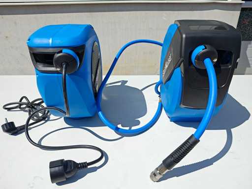 automatische luchtslanghaspel 15 meter en een automatische kabelhaspel 15 meter. ongebruikt
