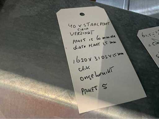 1x pakket; verzinkt ongebruikt; 1,5 mm dikte; dikte pakket 60 mm