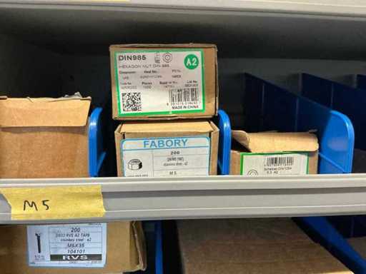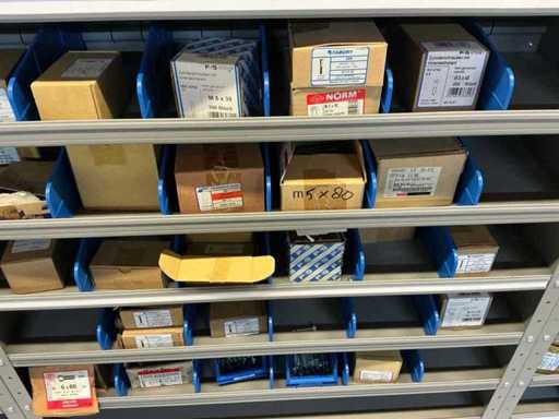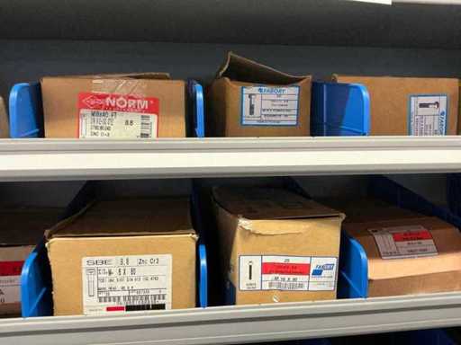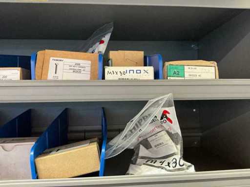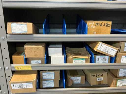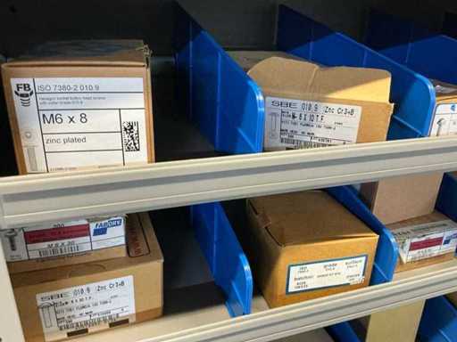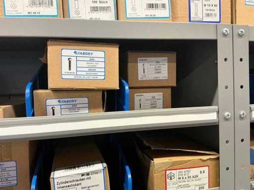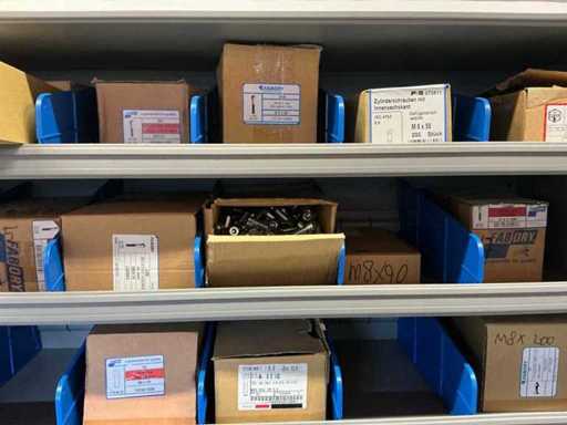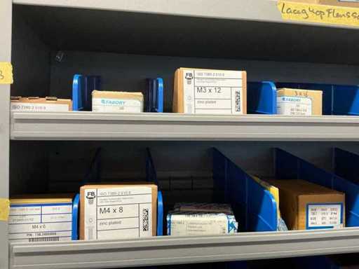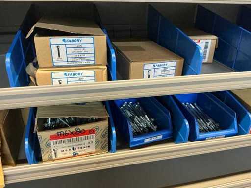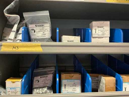 Stalen vakkenkast met Fabory ringen, schroeven en bouten (7x)