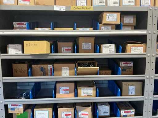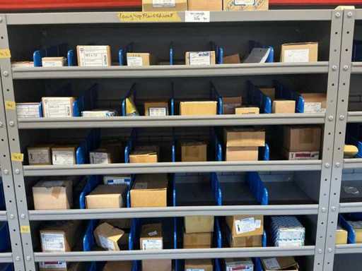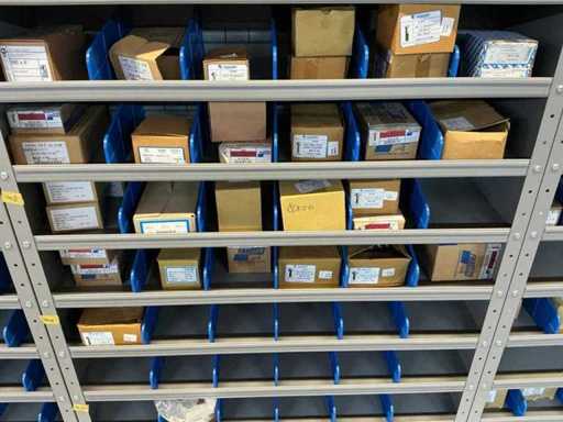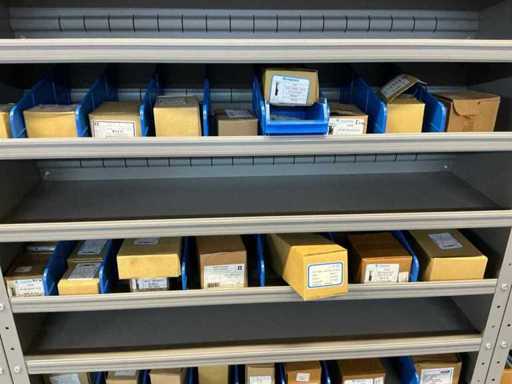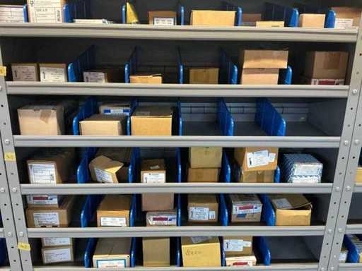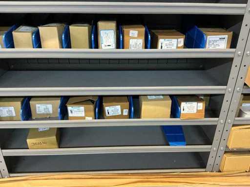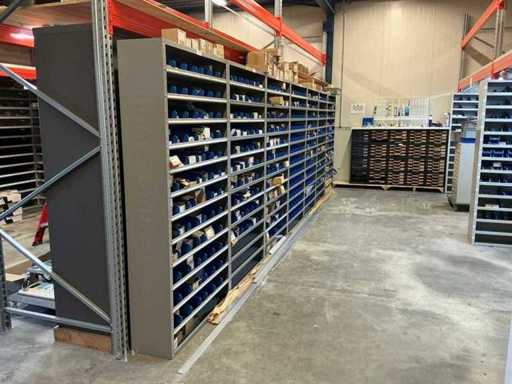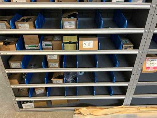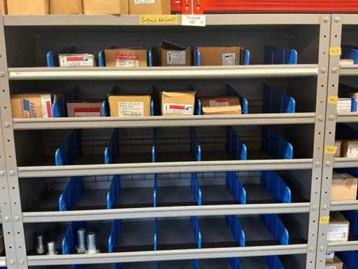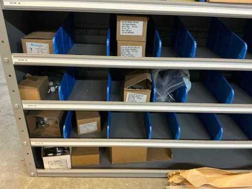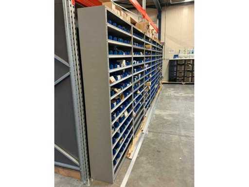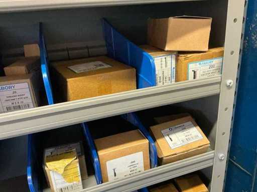 Afmeting er kast: 100x30x199 cm; allen voorzien van vakverdelers, inhoud voornamelijk rvs en verzinkt