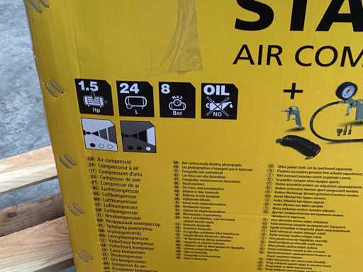 mobiele compressor 1,5 pk, 24 liter, 8 bar, met accessoires
