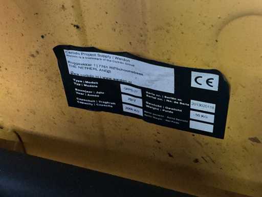 Stapelaar CBD-20J, draagkracht 2000kilo, lepellengte 115cm, beschadigd maar werkend. Handpalletwagen