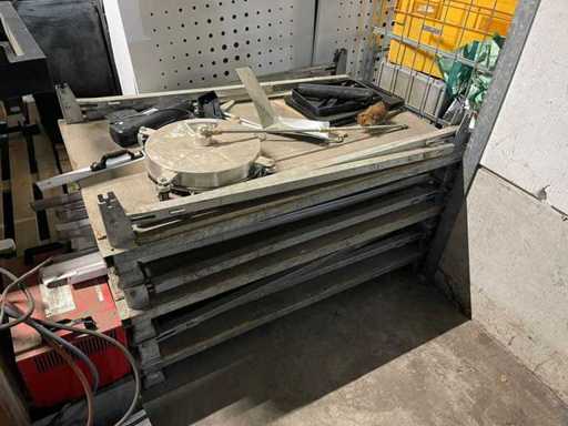 Stapelrek met inklapbare zijstukken, ontworpen om materialen verticaal op te