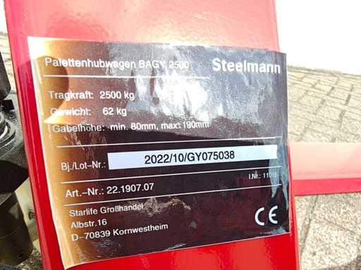 Steelman - 2500kg - Hand hydraulische palletwagen