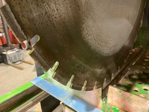 Zaagblad diameter ca Ø600mm, zaagtafel op slee max ca 130cm, verrijdbaar