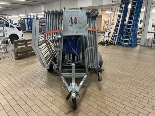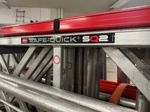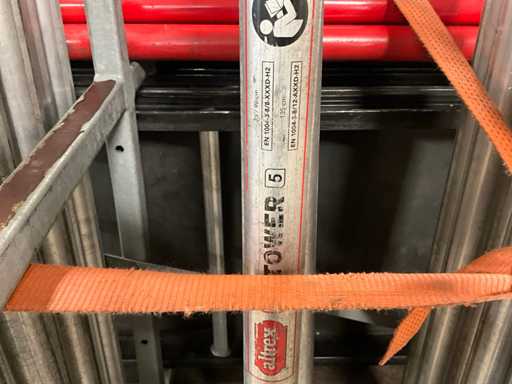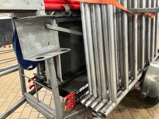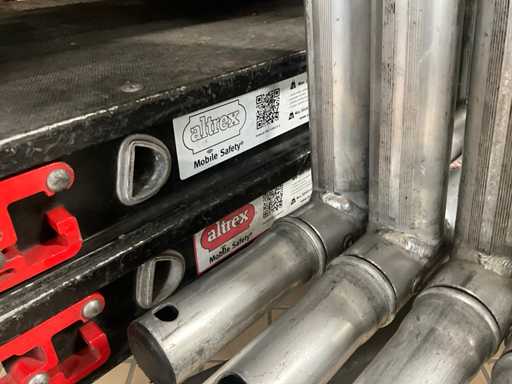 Inclusief steigerbok met 6x Altrex RS Tower 5 fiber deck 60x240cm, 7x Altrex safe quick 2 voorloopleuning 245cm, 8x Altrex RS Tower 5 opbouwframe 130x200cm, Altrex stabilisatoren, Altrex wielen en 2x RSS dakrandbeveiliging 100x300cm