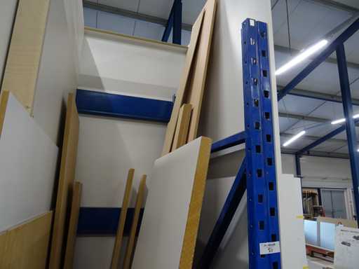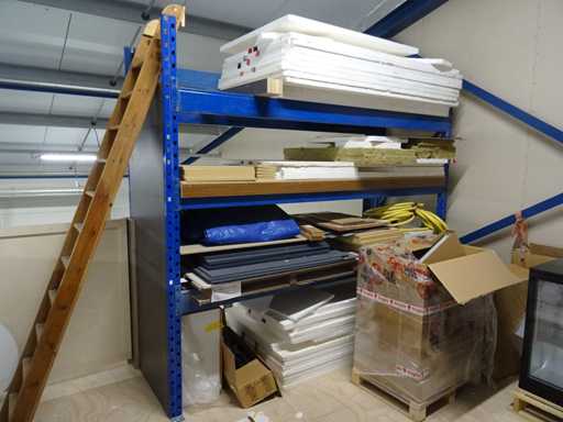 bestaande uit 4 x staander 250x90 cm en 11 x ligger a 270 cm. Zonder inhoud, 1 opstelling staat op vliering, geen lift aanwezig. Ophalen einde ophaaldag