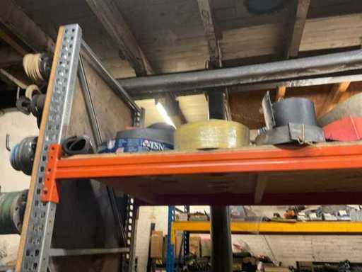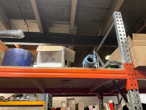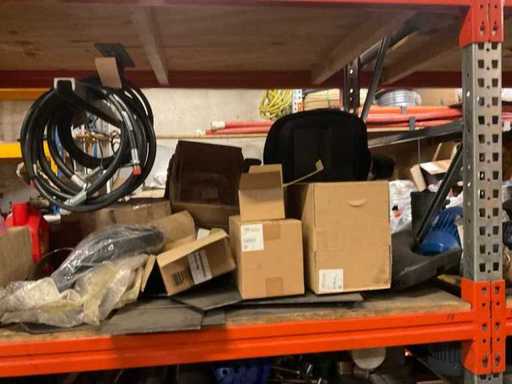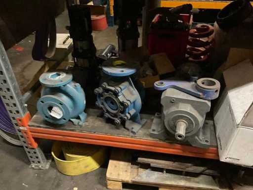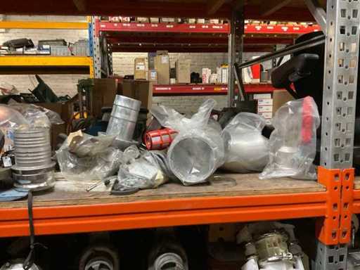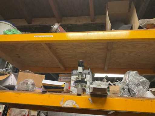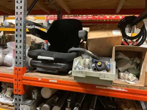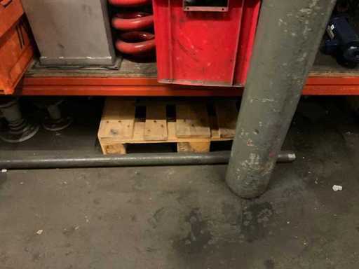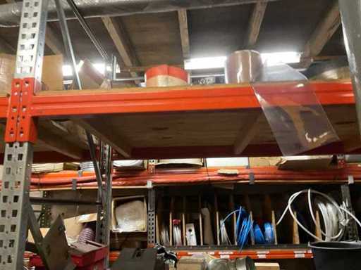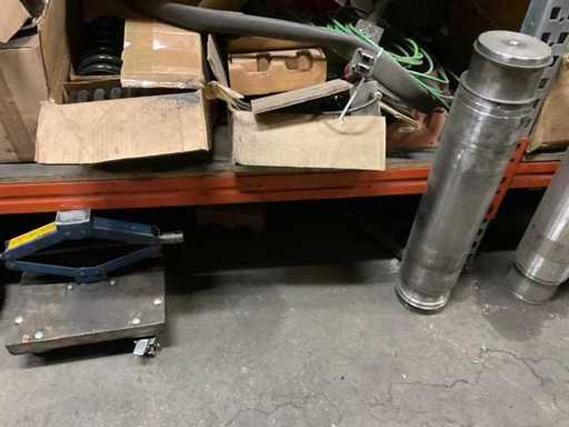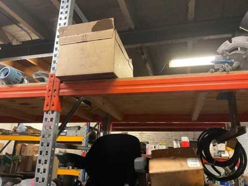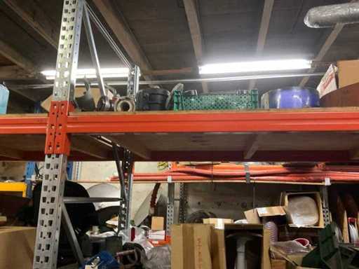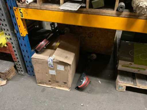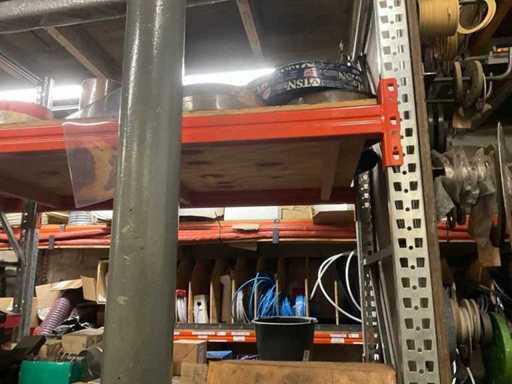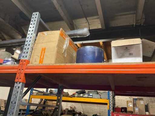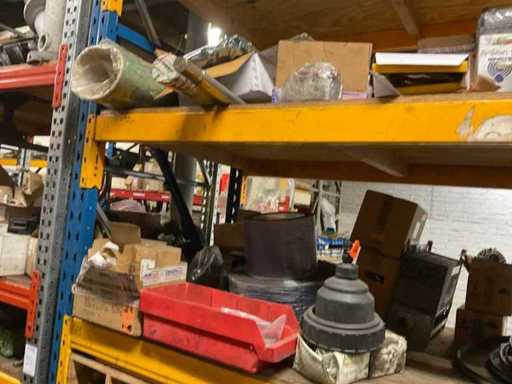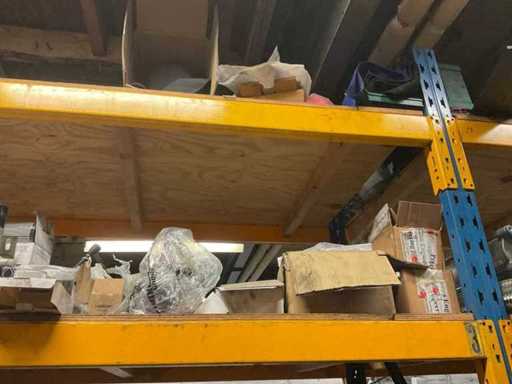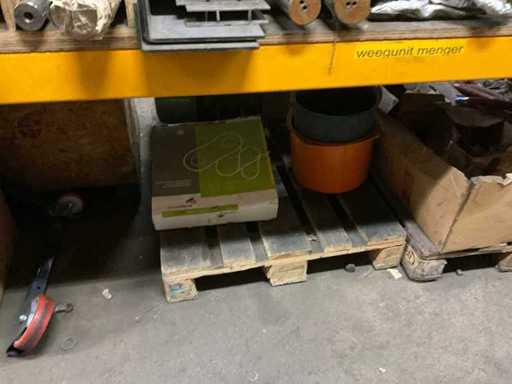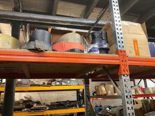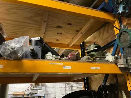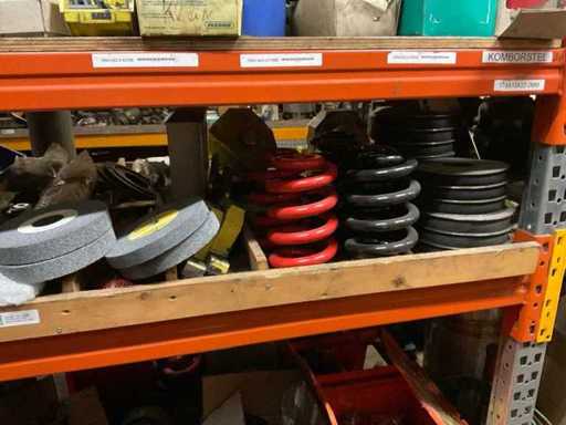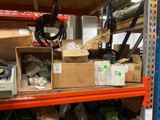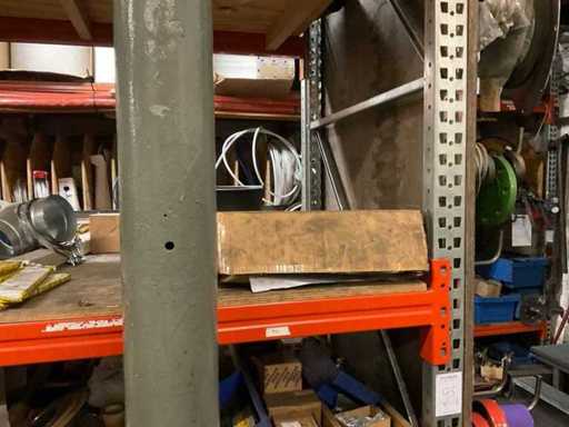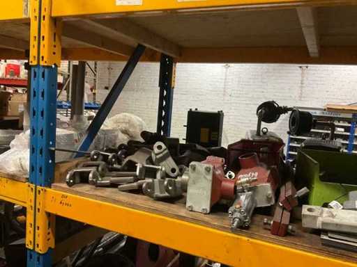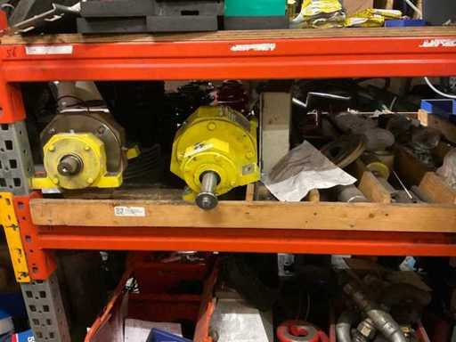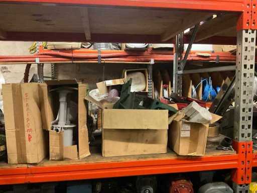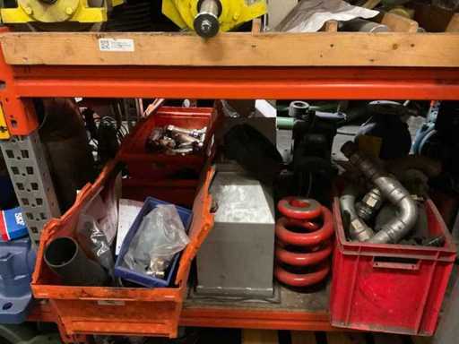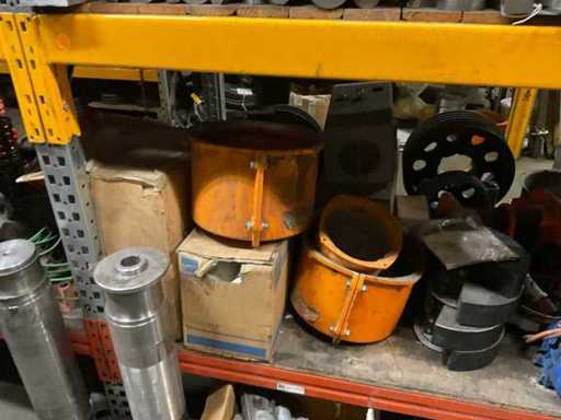 5 secties palletstelling met inhoud, bestaande uit o.a. onderdelen en toebehoren voor machines w.o. Cilinders, motoren, elektronika,stafmateriaal, pompen, veren, schuurbanden, lagers, poulies, in en inclusief palletstelling.