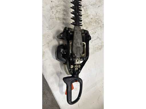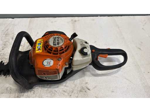 STIHL HS 81 R Heggenschaar (Benzine); Benzine-aangedreven professionele heggenschaar met dubbelzijdig snijblad; Robuust ontwerp met handstart; blade guard en CE-markering; Gebruikte staat met duidelijke slijtage en vervuiling; functionele werkplaats/terrein-uitvoering; Geschikt voor intensief groenonderhoud;