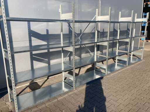 Ongebruikte Stow legbordstelling; wordt netjes gebundeld en transport klaar geleverd; zonder schoorset;