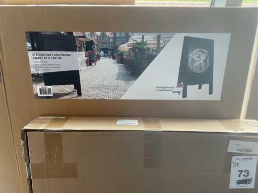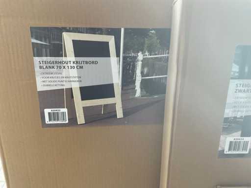 5 diverse straat/stoepborden, o.a. zwart en blank steigerhout krijtbord, A-bord met kliklijst, stoepbord waterdicht in 2 dozen.