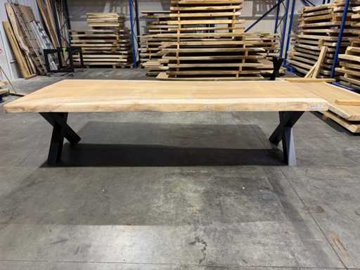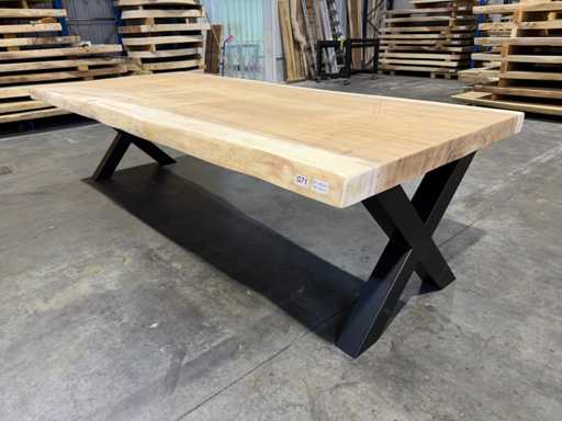 108/130 cm; 8 cm. dik massief; metalen X poot; onderstel wordt los geleverd.