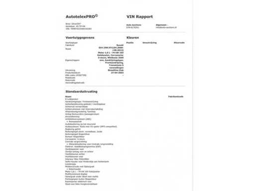 Tussen de afbeeldingen vindt u het VIN Rapport met Fabrieksinformatie en Opties en Accessoires.