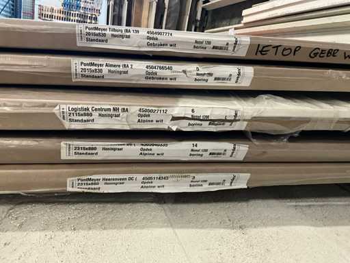 Waarvan 2 stuks hoogte 2280 mm met 1 stuks hoogte 2130 en breedte 905 mm, 2 stuks hoogte 2015 mm en breedte 830 mm
