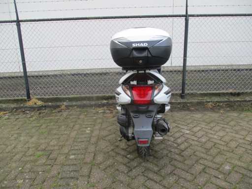 Motorscooter met 2 sleutels inclusief topkoffer in kleur (2 sleutels). Motor loopt, staat van onderhoud onbekend.