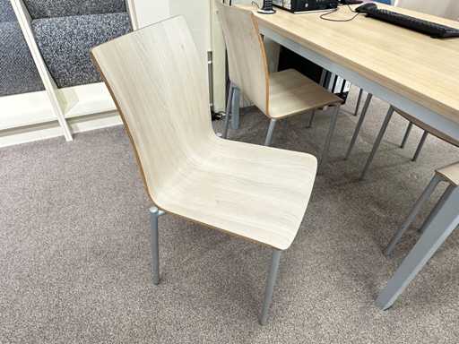 Deze stoelen van Pedrali met houten zitting hebben een zithoogte van 44 cm. Exclusief Monitor en toetsenbord.