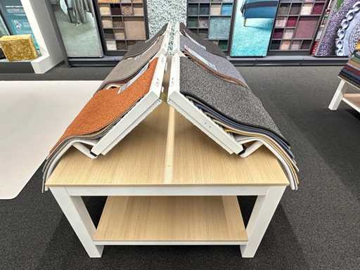Tafel met stalen displays voor vloerbedekking (12x)