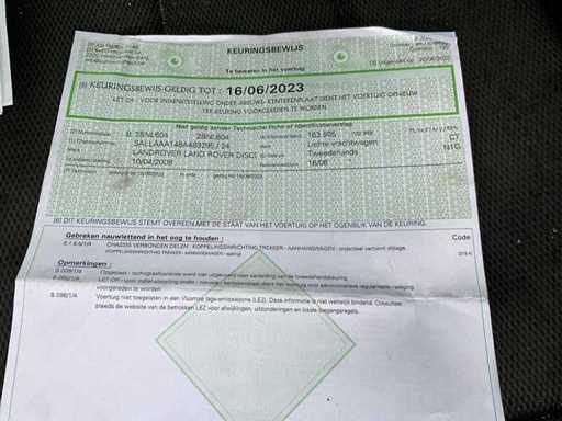 Kentekenbewijs Discovery 3 - deel I en II aanwezig, alsook gelijkvormigheidsattest, identificatieverslag en keuringsbewijs tot 16/06/2023.