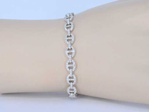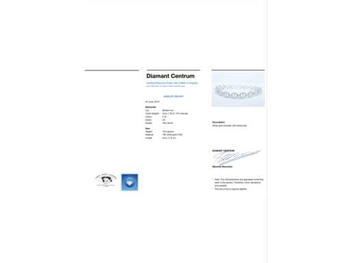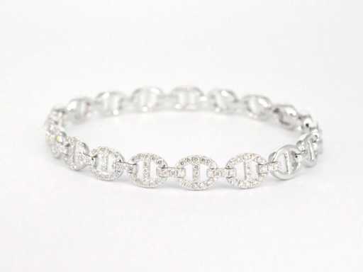Diamant: natuurlijk; Slijpvorm: Briljant geslepen; Gewicht (carat): 1.50 carat; Kleur: F-G; Zuiverheid: VS; Slijpkwaliteit: Zeer mooi; Juweel: Armband; Gewicht: 16.2 gram; Afmetingen/lengte: 17-18 cm; Materiaal: 18K goud (750); Conditie: Nieuw; Verpakking: Luxe sieradendoos; Toelichting: De kwaliteit is overgenomen van het rapport behorend bij item. De waardebepaling is een beoordeling van een gecertificeerde diamantair, gebaseerd op consumentenprijzen.; Consumentenprijs: € 15.453,-