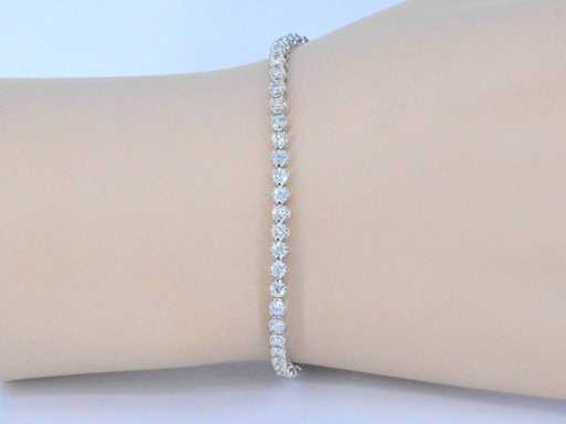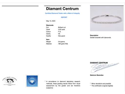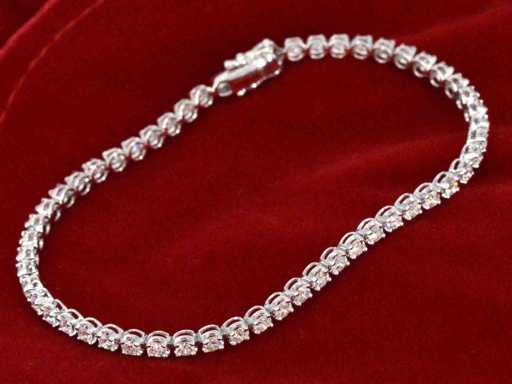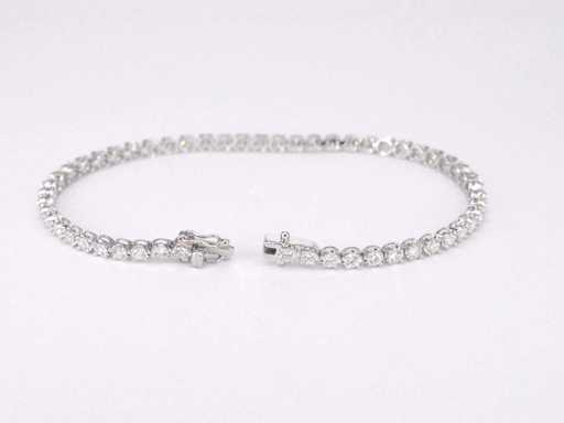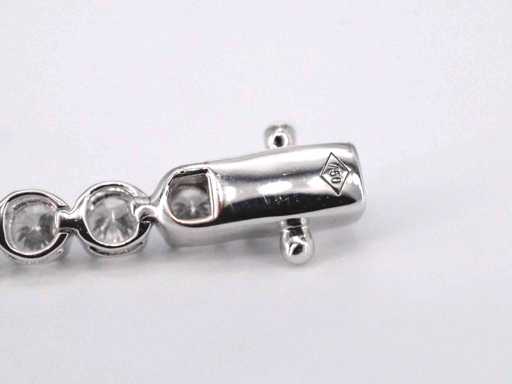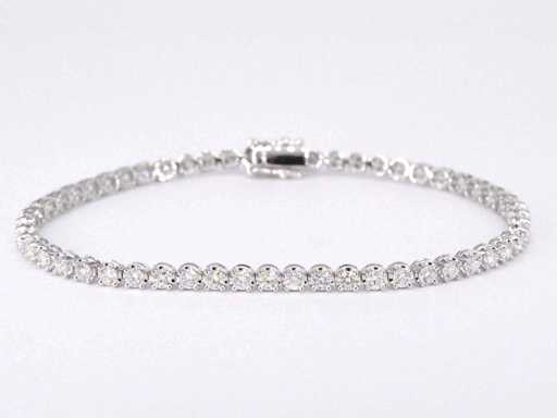 Diamant: Natuurlijk; Slijpvorm: Briljant geslepen; Gewicht (carat): 3.00 carat; Kleur: F-G; Zuiverheid: VS; Slijpkwaliteit: Zeer mooi; Juweel: Armband; Gewicht: 5.8 gram; Afmetingen/lengte: 17 cm; Materiaal: 18K goud (750); Conditie: Nieuw; Verpakking: Luxe sieradendoos; Toelichting: De kwaliteit is overgenomen van het rapport behorend bij item. De waardebepaling is een beoordeling van een gecertificeerde diamantair, gebaseerd op consumentenprijzen.; Consumentenprijs: € 18.323,-