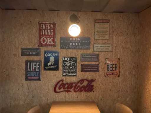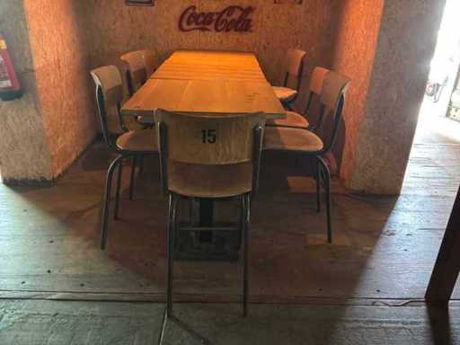 Inclusief 7 stoelen en diverse wanddecoratie.