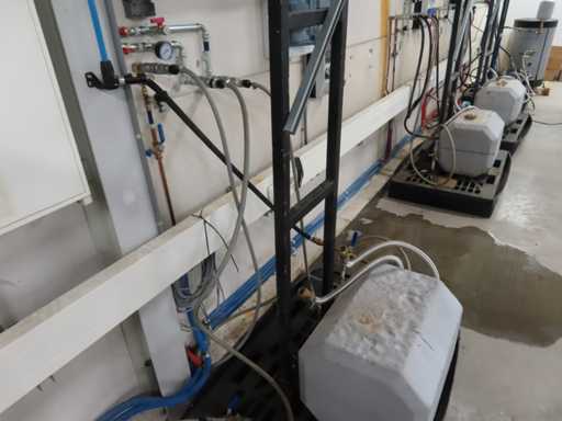 6 x testopstelling. Betreft alle handmatig los te koppelen onderdelen, zonder alle wandbevestigde onderdelen.