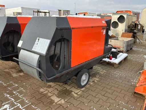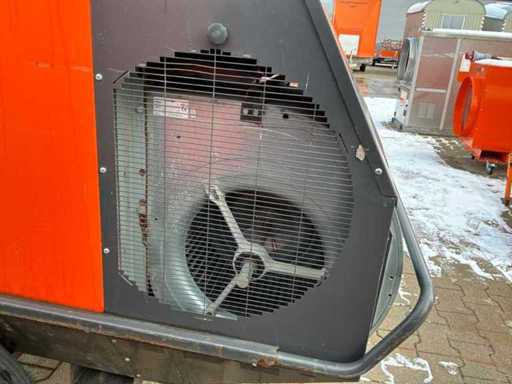 verrijdbaar; indirect gestookt; diesel gestookt; externe brandstof aansluiting; volumestroom 11500 m3 / uur; 7,7 Ampère; luchtuitlaat diameter 600 mm; rookgasafvoer; hijsogen; heftruck vorksleuven; working condition
