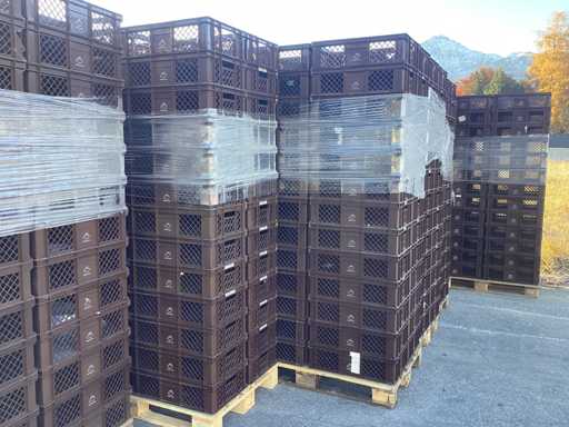 32 pallets met elk 52 stuks, afmetingen per mand ca. 60x40x16 cm, staat van de manden kan variëren, verkocht met pallet