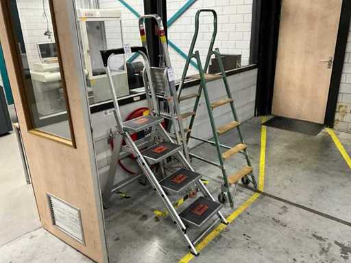 Haca dubbele trap met wielen, krause keukentrap, little giant 1x4 safety step