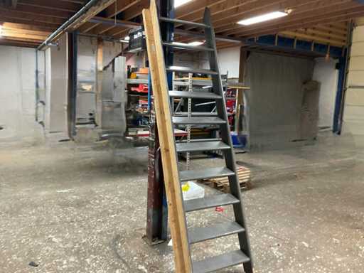 Gebruikt. Enkel groene trap die tegen paal staat.
