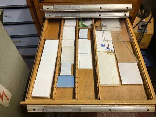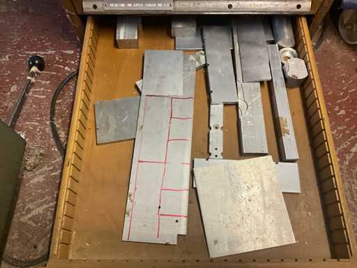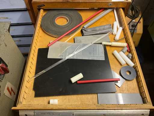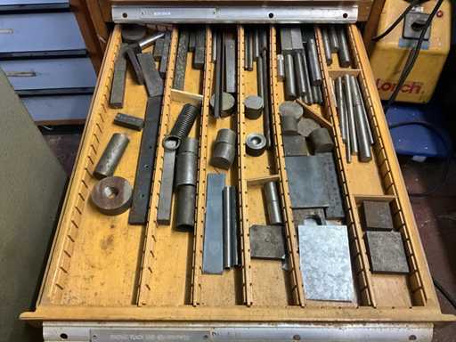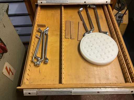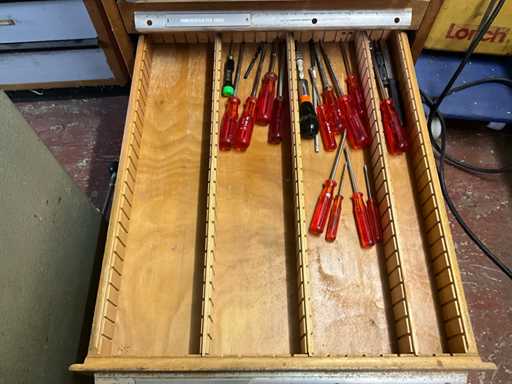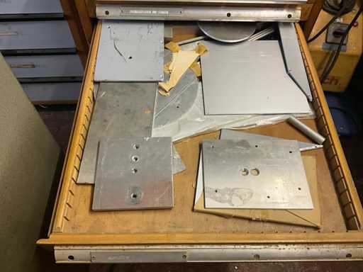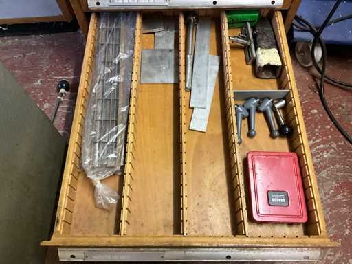 Met 12 lades, inboedel gereedschap en diversen, sleutel ontbreekt, gewicht geschat op ongeveer 60 kg, hoeveelheid en verdere details zie foto's