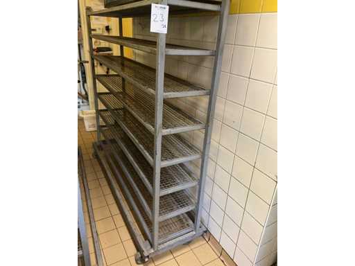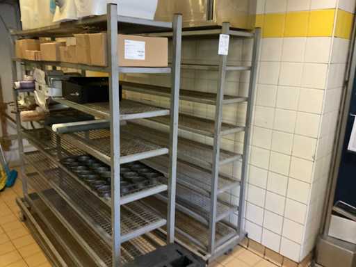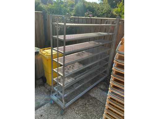 Stalen trolley, Schapmaat circa 1700x360mm, afmeting totaal per stuk circa 1780x510x1700mm, zonder inhoud!