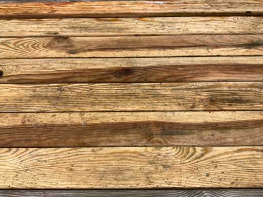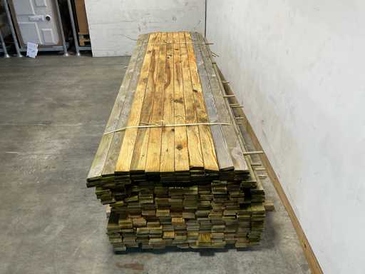 Geïmpregneerde tuinplanken met een afmeting van 360 x 9 x 2 cm.