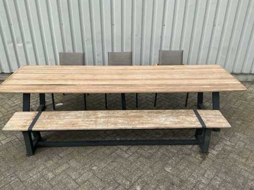 tuintafel met bank en 3 stoelen