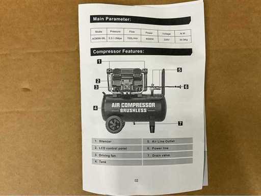 Compressor Brushless - power 4000W - Air tank 39liter Voltage AC220v Air Delivery 700L/min Pressure 0,3-1.0Mpa