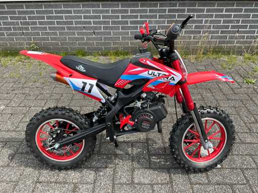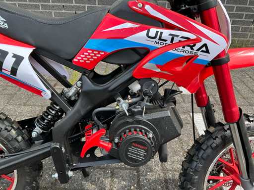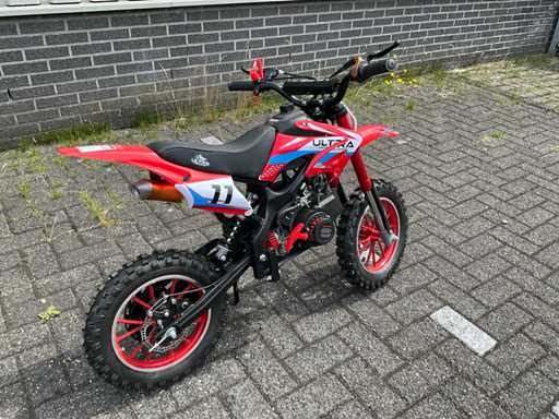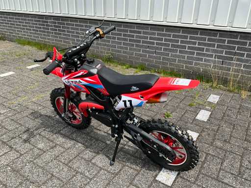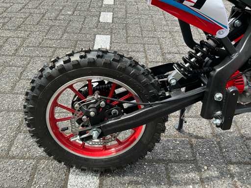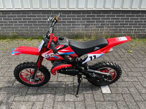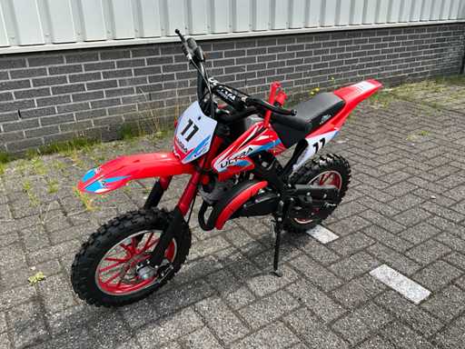 2-Takt; Dodemansknop; Trekstart; Schijfremmen; Snelheid instelbaar tot 45 km/uur; Automatische Transmissie; Zithoogte 60 cm; 10 Inch wielen. Ongebruikt in doos; dient nog gemonteerd te worden.