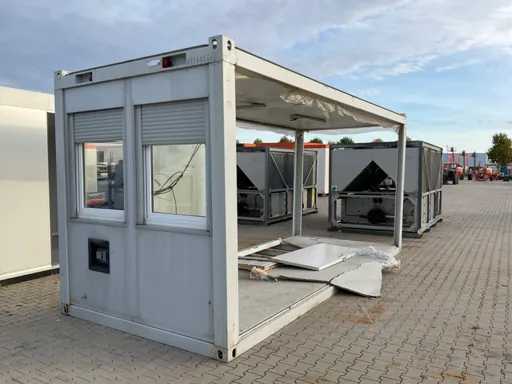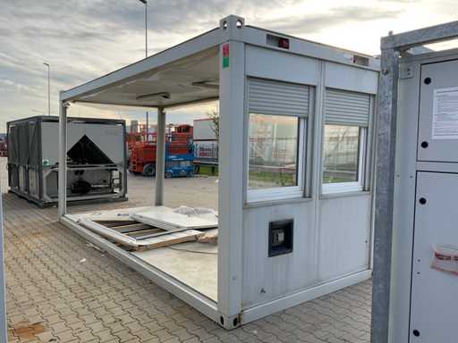 staal frame; wanden; stroom aansluiting; verlichting; gas kachel; twistlocks; de koper dient zelf te zorgen voor transport en vrachtauto met laadkraan;