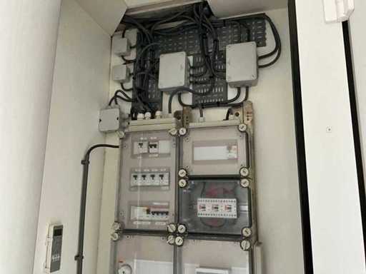 zonder toestellen; 1x enkele toegangsdeur; 2x dubbele toegangsdeur; 4x dakraam; schakel- en groepenkast; AEG boiler; waterontharder; voorzien van 400 Volt stroom en wateraansluitingen; verlichting; dakgemonteerd gegalvaniseerd staal hijsframe; working condition not verified; de koper dient zelf te zorgen voor transport en open vrachtauto met laadkraan;