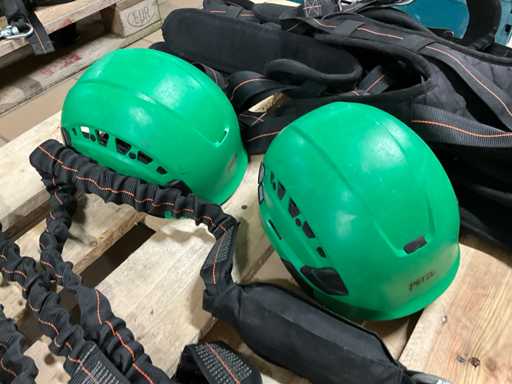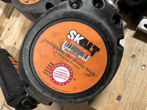 Bestaande uit: 2x Skalt Prostop 06SE valatopapparaat, 2x Skalt harnas, 2x Petzl veiligheidshelm en 2x Skalt vanglijn