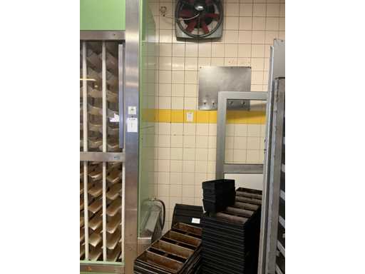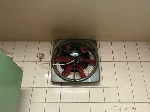 230 volt, wandgemonteerd op circa 3,1 meter hoogte, diameter ventilator circa 430 mm
