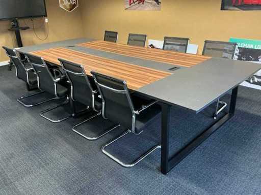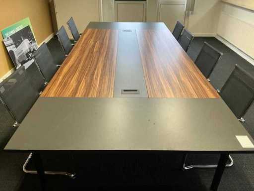 8x stoel met zithoogte 43cm; Inclusief archiefkast (120x42x111cm) met inhoud; Tafel is demontabel