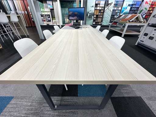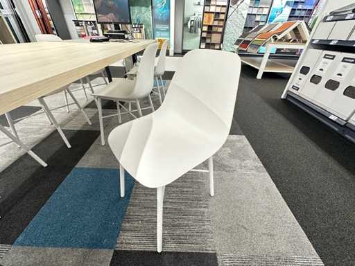 Deze set bestaat uit een tafel met 6 stoelen van Crasssevig. Zithoogte 44 cm. Inclusief 3 hanglampen. Hoogte 30 cm en diameter 6 cm. Exclusief PC met monitor.