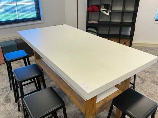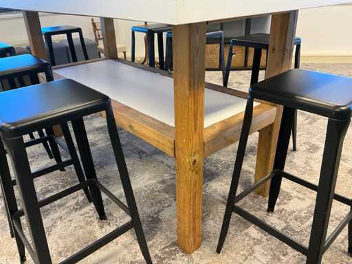 Inclusief 8x kruk (metaal) met vierkante zitting