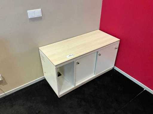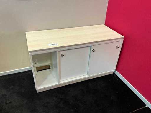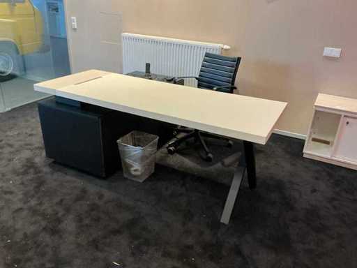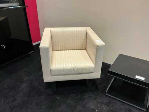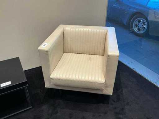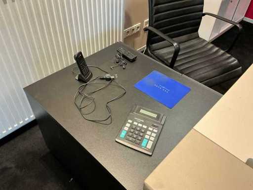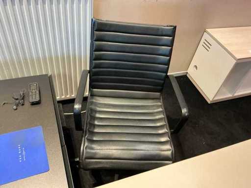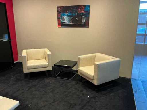 Bestaande uit dressoir, 2x wachtstoelen met tafel, bureau met fauteuil en reclamebord;
