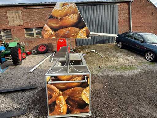 Krakelingverkoopstand met koelfunctie – opvallend reclamedak – verrijdbaar – voor markten en evenementen