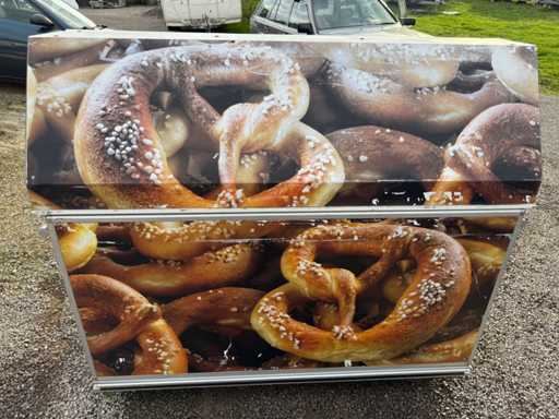 Mobiele verkoopstand voor diepgevroren pretzels, pretzels, snacks of pizzaartikelen.
